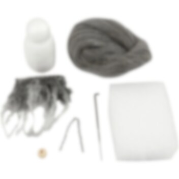 ✔️ Innehåller grå ull, grått skägg, träpärlor, frigolitkropp, filnål och nålfilsplatta