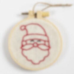 Motivet är redan tryckt på tyget, så du kan börja direkt. Brodera, rama in och låt den färdiga tomten bli en fin dekoration i julgranen, på väggen eller som en handgjord gåva till någon du tycker om.