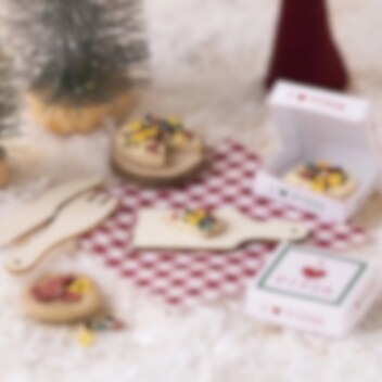 Innehåll: Silk Clay®, köksredskap i trä, träskivor, tyg, pizzakartongmall och dubbelhäftande tejp.