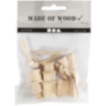 Ge nissen fler detaljer till sitt lilla julhem! Detta charmiga set med miniföremål i ljust trä är perfekt som dekoration vid nissens dörr, på en hylla eller i ett miniatyrlandskap.