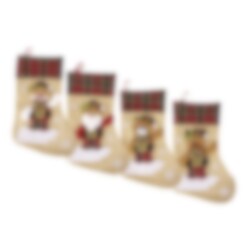Tjusiga julstrumpor med mysiga julmotiv. Fina att ha hängandes uppe längs kaminen eller väggen och fylla dem med en liten present till barnen när julaftons morgon kommer.