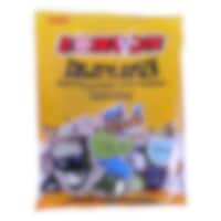 Ingredienser: Socker, glykossirap, surhetsreglerande medel (äppelsyra), ammoniumklorid, lakritspulver, salt, aromämnen, färgämnen.