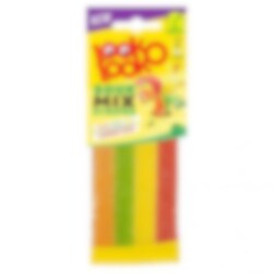 Färgsprakande och syrliga godisremmar med smak av apelsin, grönt äpple, citron och jordgubb. En härlig kombination av sött och surt som får det att kittla till i munnen! Perfekta att lägga i godispåsar, som biogodis eller för den som älskar fruktiga smaker med extra sting.