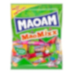 Maoam mix innehåller en blandning av Moam godisar. Både Stripes, Sour stripes, Bloxx, Kastanjer, JoyStixx och Happy Fruttis. Vikt: 240 gram.