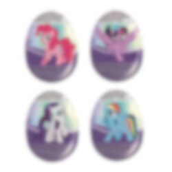 Fina chokladägg som innehåller en överraskning inuti med motiv från My Little Pony. Kul att lägga i kalaspåsen innan kalaset. Chokladäggen innehåller ca 20 gram och säljs osorterade och styckvis.