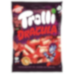 Supercoola skum- och gelégodisar formade som Draculatänder med härlig jordgubbssmak. Perfekta till halloweenkalaset, kalaspåsarna eller som en kul detalj i piñatan. Godiset är glutenfritt.