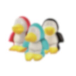 Skum- och gelégodisar med fruktsmak som föreställer gulliga pingviner i olika färger.