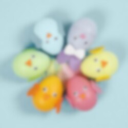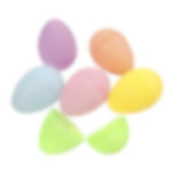Tvådelade plastägg i pastellfärger utan hål. De har en storlek på 6 x 4 cm och kan fyllas med lite godis eller någon mindre leksak och sedan användaa i en rolig äggjakt.