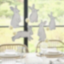 Dekorera till påsk med dessa roliga hängande påskharar som är perfekta för att sprida glädje i rummet och att hängas upp ovanför ditt påskbord. Samtliga påskharar har en krämvit vacker färg och roliga svansar av honeycomb.