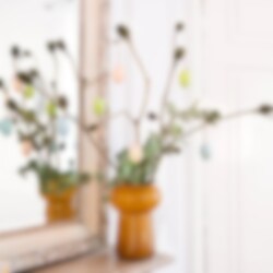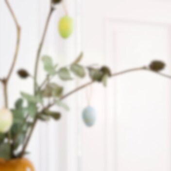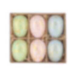 Dessa eleganta påskägg i mjuka pastelltoner med vackra gulddetaljer ger din påskdekoration en lyxig touch. Tillverkade av plast för extra hållbarhet, passar de perfekt att hänga i påskriset eller använda i andra kreativa dekorationer. Storlek ca 6 x 4 cm.