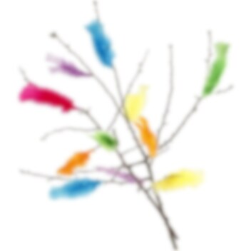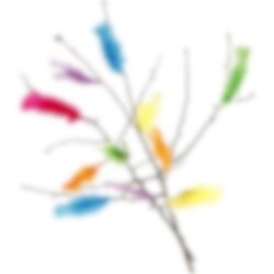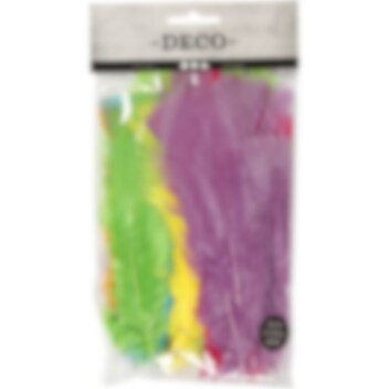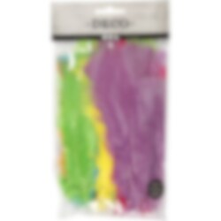 Påskfjädrar i färggranna färger som sitter i små buntar 3 st. som sitter ihop med en ståltråd. Fjädrarna är ca 11 till 17 cm höga och är tillverkade av dun.