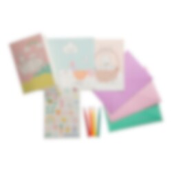 Fira påsken med en personlig touch med våra DIY Påskkort 3-pack. Detta kreativa set innehåller allt du behöver för att skapa unika påskhälsningar: tre kort, tre kuvert, ett ark med klistermärken och fyra tuschpennor. Perfekt för att uttrycka din kreativitet och skicka personliga önskningar till familj och vänner. Oavsett om du är en erfaren pysslare eller bara letar efter en rolig aktivitet för påskhelgen, ger detta set dig möjligheten att skapa minnesvärda kort som mottagarna garanterat kommer att uppskatta.