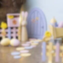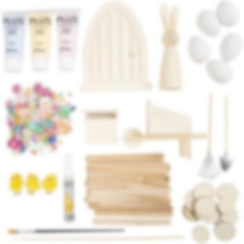 Skapa en magisk påskvärld med detta underbara pysselkit! Med påskharens egen lilla dörr och massor av söta tillbehör kan du låta fantasin flöda och dekorera en mysig plats för påskharen att bo.