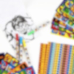 ✔️ Innehåller block, 4 färgpennor och 1000+ stickers