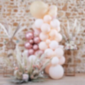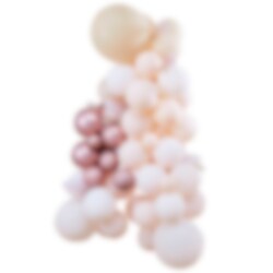 Läcker ballongbåge i vit-, persika- och roséguldfärgade toner som du själv bygger ihop. En verkligt imponerande dekoration som passar både till kalas, fester eller bröllop. Förpackningen innehåller hela 70 st. ballonger i olika storlekar och tillbehör. Ballongbågen är ca 4 meter lång.