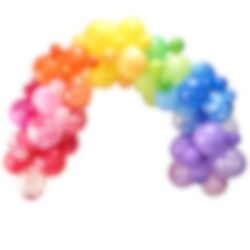 Ballongbågen består av 13 cm och 30 cm stora ballonger i följande färger: rosa, lila, röd, blå, grön, gul och orange. Det följer även med 4 m ballongtejp och limprickar.