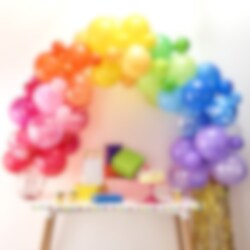 Cool ballongbåge i färgglada regnbågsfärger som du själv kan bygga ihop. En dekoration som passar till kalas, fest eller bröllop. Förpackningen innehåller 85 st. ballonger och engelska instruktioner på hur du bygger ihop bågen. Ballongbågen blir ca 4 meter lång hopbyggd.