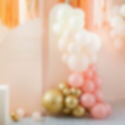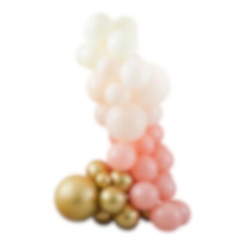 Imponerande ballongbåge i persika- och guldfärgade toner som du själv bygger ihop. En riktig lyxig dekoration som passar både till kalas, fester eller bröllop. Förpackningen innehåller hela 75 st. ballonger i olika storlekar och tillbehör. Ballongbågen är ca 4 meter lång.
