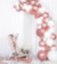 Vacker ballongbåge i roséguld och vitfärgade toner som du själv bygger ihop. En verkligt imponerande dekoration som passar både till kalas, fester eller bröllop. Förpackningen innehåller hela 84 st. ballonger i olika storlekar och tillbehör. Ballongbågen är ca 5 meter lång.
