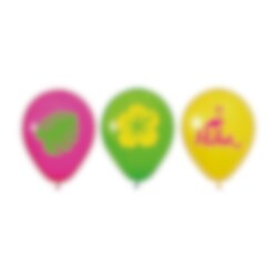 Skapa en färgstark och tropisk festkänsla med dessa fina ballonger i Aloha-tema. De klara färgerna i rosa, grönt och gult tillsammans med motiv av blad, blomma och texten Aloha gör dem till en lekfull dekoration som passar perfekt till sommarfest, hawaiikalas, poolparty eller andra firanden med tropisk känsla.