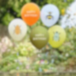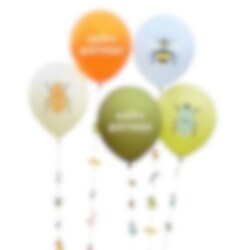 Ge ditt Bug Party en färgglad touch med dessa ballonger med roliga ballongsvansar! Perfekta för att skapa en lekfull atmosfär med naturtema. Varje förpackning innehåller fem ballonger med olika tryck.