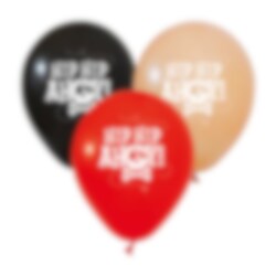 Skapa en härlig piratstämning på kalaset med dessa festliga ballonger i svart, rött och beige. Ballongerna är dekorerade med texten "Hip Hip Ahoy!" och en klassisk dödskalle, vilket gör dem till ett perfekt val för ett piratkalas med lekfull och äventyrlig känsla.