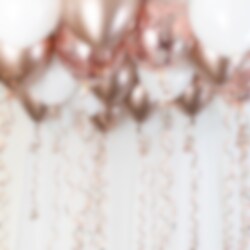 Snyggt ballongkit i roséguld- och kromfärgade toner som du kan pynta ditt tak med inför varje kalas, fest eller bröllop för en imponerande dekoration.