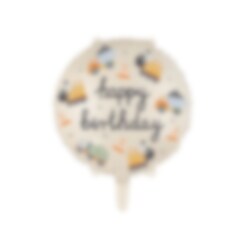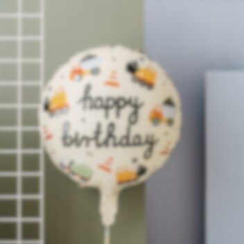 Snygg folieballong med häftiga fordonmotiv. Ballongen har texten Happy Birthday.