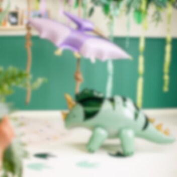 Folieballong som föreställer en pterodactyl i lila färg med guldfolierade detaljer. Ballongen är 120 x 62 cm stor uppblåst och kan blåsas upp med luft eller helium.