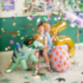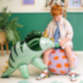 Folieballong som föreställer en Tricatops i gröna färger med detaljer i guldfolie som blir en kul dekoration till dinosauriekalaset. Ballongen har en storlek på 101 x 60 cm när den är uppblåst och kan blåsas upp med vanlig luft eller helium.
