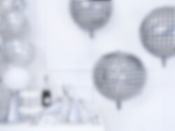 Snygg folieballong föreställande en discokula. En häftig dekoration till kalaset eller festen. Ballongen är ca 40 cm i diameter uppblåst och blåses lättast upp med helium.
