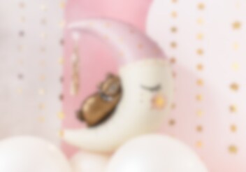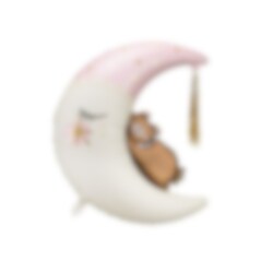 Dekorativ folieballong som föreställer en halvmåne med en sovande teddybjörn som garanterat blir uppskattad till varje Babyshower party. Ballongen är 80 x 98 cm stor uppblåst och blåses upp med helium eller luft.