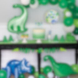 Riktigt cool folieballong som föreställer en triceratops i blåa färger. En iögonfallande dekoration att ha med till varje kalas med roligt dinosaurietema.