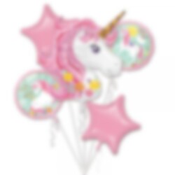 Förvandla kalaset med denna vackra ballongbukett med roligt enhörningsmotiv! Perfekt för att skapa en festlig och lekfull atmosfär.