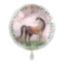 Se vår fina folieballong med häst-motiv och texten Grattis på födelsedagen! Ballongen blir 43 cm när den är uppblåst och kan blåsas upp med helium eller luft. Ballongen har en självslutande ventil och för att blåsa upp den med vanlig luft så behöver du en ballongpump, alternativt ett sugrör.