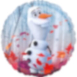 Folieballong med motiv på båda sidor av Anna, Elsa och Olaf i en vinterskog med färggranna löv från filmen Frost 2. En tjusig dekoration att ha med till ditt Frost kalas. Ballongen är ca 45 cm i diameter uppblåst och blåses lättast upp med helium.