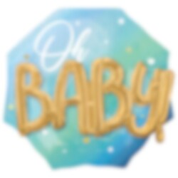Folieballong i grön och blå färger med 3D motiv av texten "Oh Baby" i vitt och guld. En snygg dekoration ha med under babyshowern. Ballongen är ca 71 x 76 cm stor uppblåst och kan blåsas upp med luft eller helium.