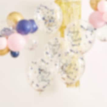 5 st. ballonger fyllda med blå och rosa konfetti samt med den utvändiga texten "Baby Shower". En fin dekoration till ditt Gender Reveal party. Ballongerna blir ca 25 cm i diameter uppblåsta.