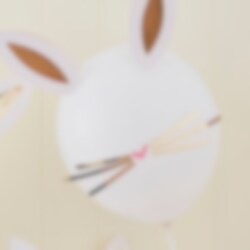 5 st. ballonger som blir till fina kaninansikten med hjälp ev de medföljande tillbehören. Ballongerna är 30 cm i diameter.