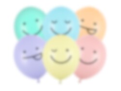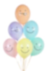 6 st. jättefina ballonger i läckra pastellfärger och med motiv av roliga Smileys. Tjusiga att ha med till Emoji kalaset för en extra snygg dekoration.