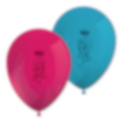 8 st. ballonger i färgerna blå och mörkrosa samt med motiv av andarna Shimmer och Shine. En snygg dekoration att ha med under födelsedagskalaset med Shimmer and Shine som tema. Ballongerna blir ca 28 cm i diameter när de är uppblåsta och kan blåsas upp både med helium och vanlig luft.