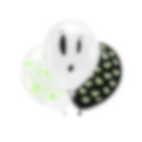 Dessa orange ballonger med tryckta pumpaansikten har en inbyggd LED-lampa. Den varma glöden skapar en stämningsfull dekoration, perfekt att placera på bordet, i fönstret eller längs med entrén inför halloweenfirandet.