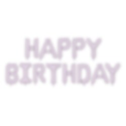 Jättefin ballonggirlang som bildar orden "Happy Birthday" i vacker ljuslila färg. Girlangen är 340 cm lång och varje ballong är 35 cm hög. Ballongerna har en självslutande ventil, och du kan enkelt blåsa upp dem med en ballongpump eller med det medföljande sugröret.