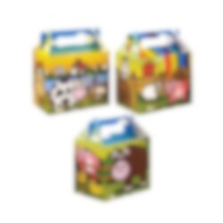 Fin partybox i tre olika designutföranden med färgglada bondgårdsdjur. Perfekta att lägga godis och småleksaker i till ditt Bondgårds-kalas. Partyboxen är gjord av kartong och viks enkelt ihop.
