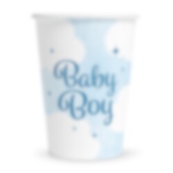 Duka upp till en fin babyfest med dessa dekorativa pappmuggar i ljusblått med texten Baby Boy. De blir en fin detalj på festbordet och passar perfekt till baby shower, dop och välkomstfirande.