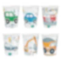 6 st. pappmuggar med färgglada fordonsmotiv, perfekta till ett roligt kalas med fordonstema! Muggarna är 9 cm höga och rymmer 220 ml.