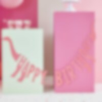 8 st. vackra papperstallrikar med rosafärgade kanter med motiv av dinosaurier i rosa nyanser i mitten. Tallrikarna är ca 24 cm i diameter. Kan även användas som serveringsfat till det skojiga dinosauriekalaset.