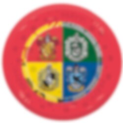 Ge kalaset en magisk känsla med dessa färgstarka och tåliga plasttallrikar med Harry Potter. Motivet visar de fyra elevhemmen Gryffindor, Slytherin, Hufflepuff och Ravenclaw i en tydlig kvadratuppdelning, omgivna av en röd kant som gör tallrikarna till ett iögonfallande inslag på bordet.