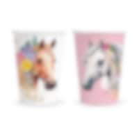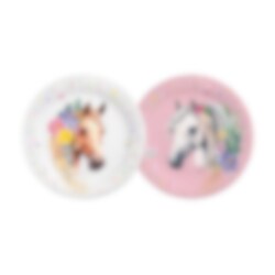 Duka upp till ett fint hästkalas med dessa charmiga papptallrikar med vackra hästmotiv. Tallrikarna har två olika designer i mjuka toner, en med vit häst och en med brun häst, båda dekorerade med blommor som ger dukningen en drömsk och lekfull känsla.