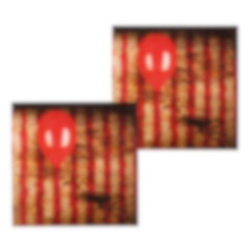 12 st. fina servetter med kusligt motiv av en röd ballong med ögon framför en blodig bakgrund. Servetterna är 2-lagers och är ca 33 x 33 cm stora utvikta.